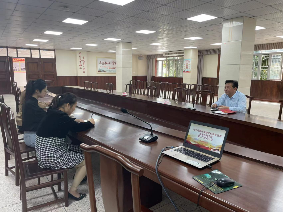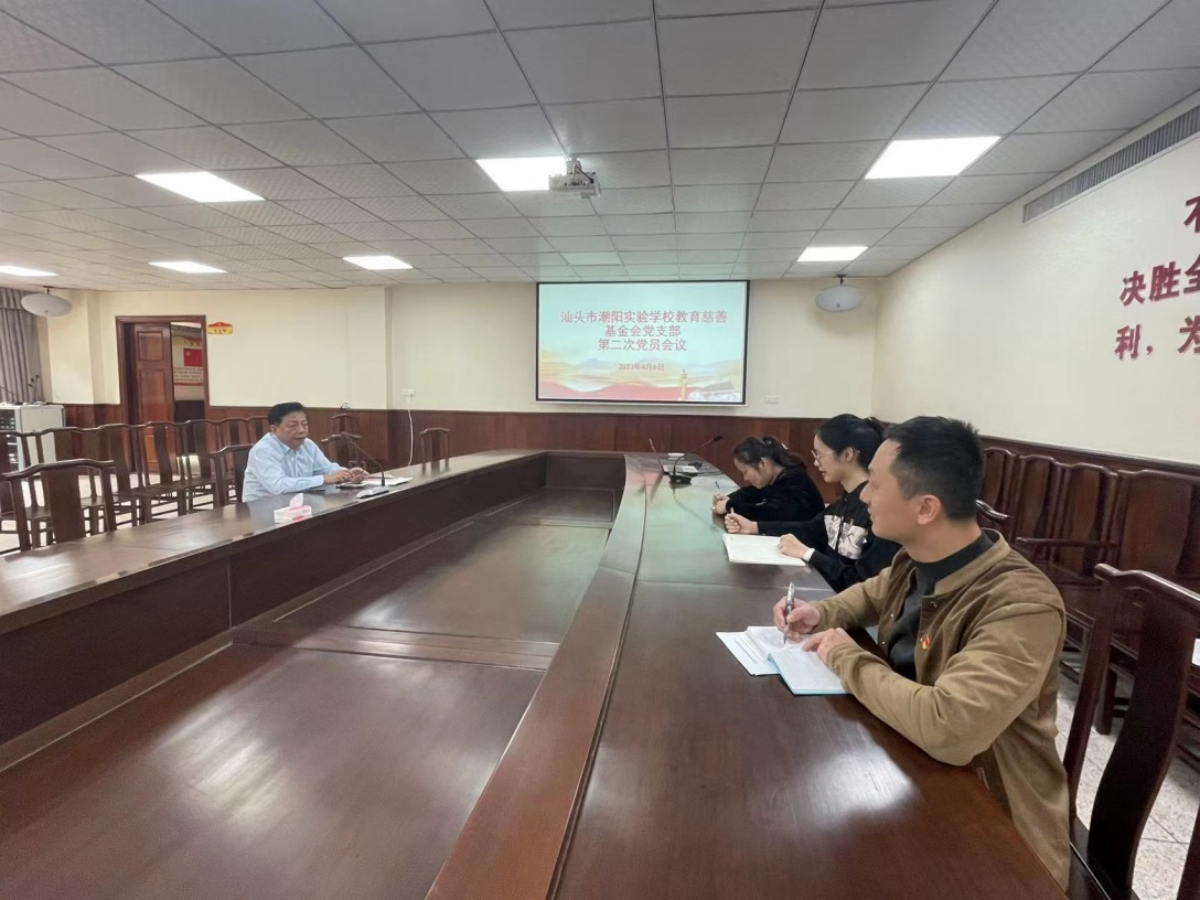 汕頭市潮陽實驗學校教育慈善基金會黨支部于2023年4月6日,在潮實黨員活動室組開展第二次黨員會議,會議上組織學習專題黨課,學習貫徹2022年全國“兩會”精神。支部書記黃根林主講,基金會全體黨員參加會議。