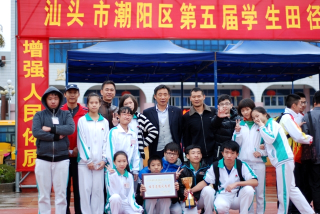 在2013年12月16日剛結(jié)束的潮陽區(qū)第五屆學(xué)生田徑運動會上,汕頭市潮陽實驗學(xué)校派出的小學(xué)、初中、高中三支代表隊取得優(yōu)異成績:共打破5項次潮陽區(qū)紀錄;獲得16塊單項金牌和2塊接力金牌;小學(xué)團體第一名、初中團體第一名;三支代表隊都獲得“體育道德風(fēng)尚獎”。具體獲獎情況如下: