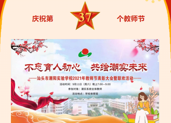 惠風(fēng)和暢,丹桂飄香。9月11日晚,學(xué)校于體育館隆重舉辦“不忘育人初心 共繪潮實未來”2021年教師節(jié)表彰大會暨聯(lián)歡活動,鄭立平董事長、鄭益烽董事等學(xué)校校務(wù)委員及全體教職員工齊聚體育館。...
