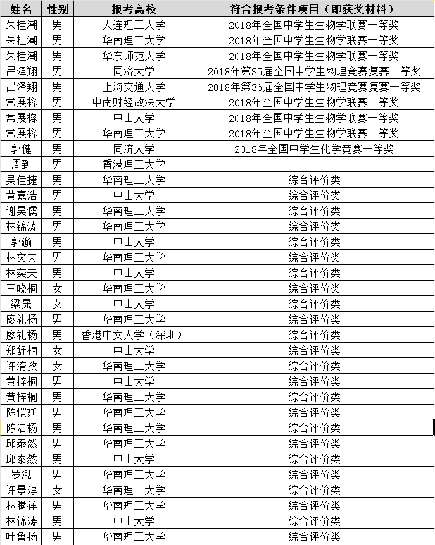 汕頭市潮陽(yáng)實(shí)驗(yàn)學(xué)校高中部學(xué)生參加2019年普通高校自主招生材料公示