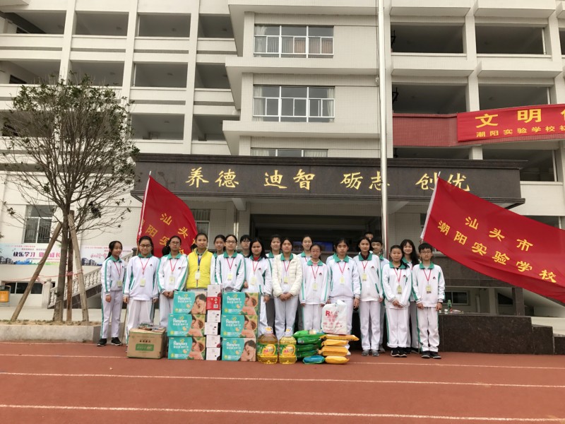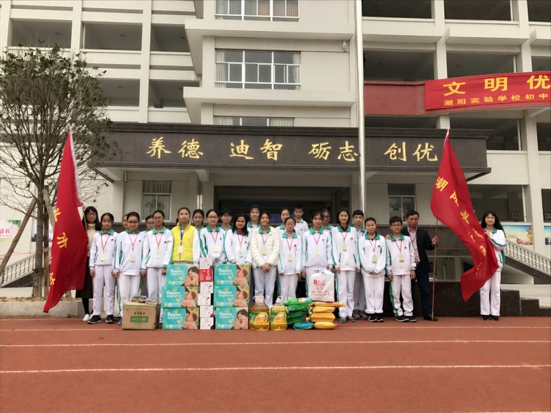 2017年3月25日上午,我校初中部學生代表在政教處劉昭武主任的帶領下,前往潮陽區(qū)福利院看望孤殘兒童,并送去大米、食用油、紙尿褲、水彩筆、書、掛畫、和玩具等,學生代表還與福利院的小朋友進行互動和游戲,給他們帶去溫暖和問候。