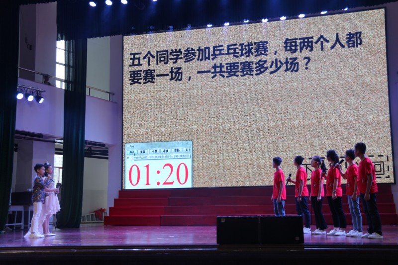 五月是快樂的,五月是美妙的,五月是充滿智慧的。5月19日,陽光明媚,風(fēng)和日麗,潮陽實驗初中部首屆“數(shù)學(xué)對抗賽”在禮堂隆重舉行,這是一場前所未有的數(shù)學(xué)盛宴。 上午10:00,激情四射的開場舞拉開比賽的帷幕。當(dāng)主持人宣布比賽開始時,現(xiàn)場參賽者與觀眾澎湃的激情瞬間被點燃,由七年級選手組成的5支隊伍整裝待發(fā),紅黃藍(lán)綠橙的服裝似乎是選手熱情的象征。比賽第一環(huán)節(jié)—勝者為王,此環(huán)節(jié)為限時作答,選手們?nèi)σ愿埃瑺?br /> 分奪秒,精彩的表現(xiàn)獲得會場觀眾們陣陣熱烈的掌聲,連主持人都投入到為選手加油陣勢中。第二環(huán)節(jié) —限時搶答,迎戰(zhàn)選手你追我趕,不甘落后,比賽很快進(jìn)入了白熱化狀態(tài)。第三環(huán)節(jié)—擂主爭奪,選手輪番作答,勢均力敵,將比賽推向又一個高潮。 比賽中以廣告形式插入魔方達(dá)人秀、優(yōu)秀學(xué)生數(shù)學(xué)學(xué)習(xí)經(jīng)驗介紹、七年級9位數(shù)學(xué)優(yōu)秀學(xué)生VCR欣賞等環(huán)節(jié)�?犰诺谋尘耙魳罚贝俚哪Х叫D(zhuǎn)聲,言簡意深的經(jīng)驗介紹,觀眾的歡呼聲,賦予了此次活動別樣的精彩。 上午11:00,潮陽實驗學(xué)校初中部首屆“數(shù)學(xué)對抗賽”圓滿落幕,活動獲得領(lǐng)導(dǎo)和家長的一致好評。此次活動,是全體七年級數(shù)學(xué)老師努力付出的結(jié)晶,旨在讓數(shù)學(xué)以更精彩、更豐富的形式呈現(xiàn)在學(xué)生面前,激發(fā)學(xué)生更濃厚的學(xué)習(xí)興趣。感謝學(xué)校領(lǐng)導(dǎo)對我們工作的大力支持,感恩家長的認(rèn)可與贊美。今后我們將不斷努力,不斷創(chuàng)新,不斷前行,讓數(shù)學(xué)越來越精彩。 ![]() ![]() ![]() ![]() ![]() ![]() ![]() ![]() ![]() ![]() ![]() |