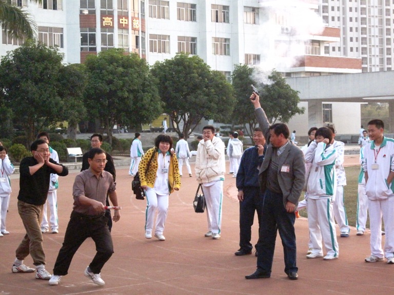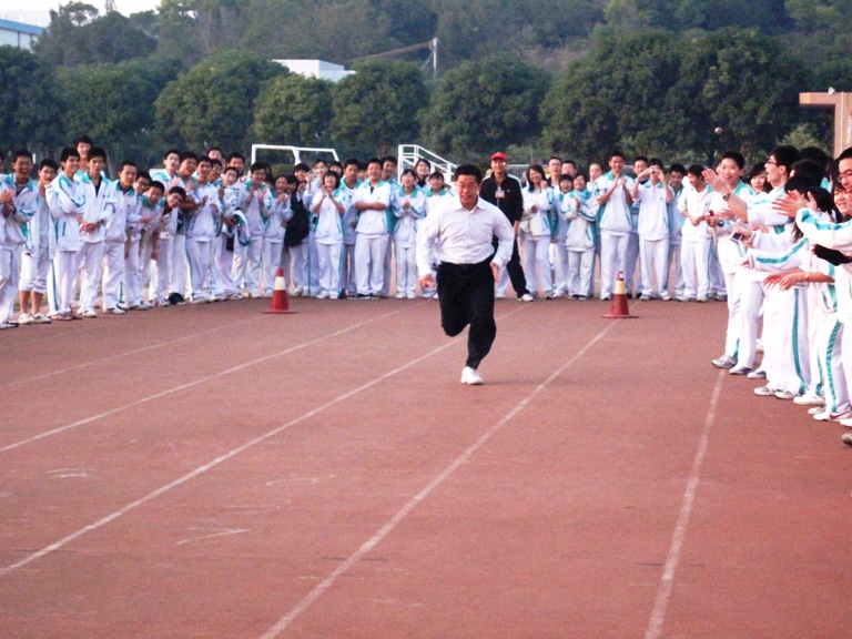 此次運動會是以“弘揚拼搏精神、促進學生健身運動、推進校園和諧建設”為宗旨,以班級為單位報名參加比賽的趣味健身體育運動。比賽分團體項目與個人項目兩部分進行,共進行袋鼠搬家、眾星捧月、投石問路、小馬過河、跳繩、定點投籃等十多個項目。21日下午4點,運動會在室外運動場正式開幕。當天的跳繩和袋鼠搬家等多個項目準時開展。賽場上,各班運動隊員那種“團結就是力量”“愛拼才會贏”的精神頻頻博得觀眾熱烈的掌聲和加油聲。運動會在“友誼第一、比賽第二”的良好氛圍中有序進行,特別是23日下午5時許,由高二年級12個班主任、政教主任鄭楚堅和教務主任張仕平參加的100米接力賽,隨著張復昌校長的發(fā)令槍響,全場熱情高漲,掌聲此起彼伏,在大家的笑聲中,本次運動會畫上了完美的句號。