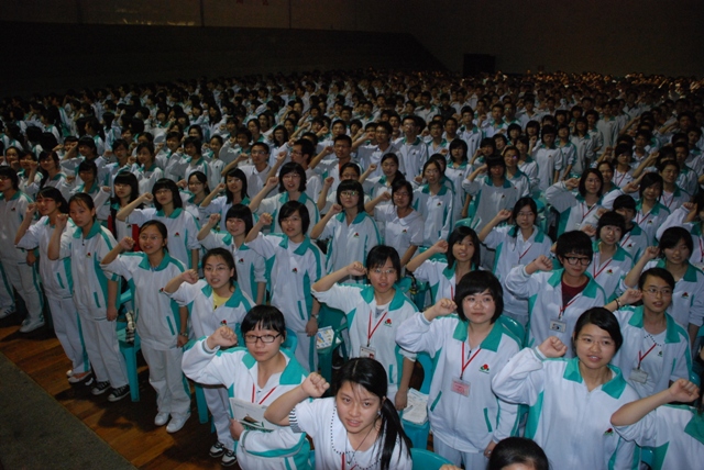整個(gè)會(huì)場秩序很好,學(xué)生認(rèn)真專注,時(shí)不時(shí)報(bào)出熱烈的掌聲,學(xué)生代表陳妍如、鄭捷、曾路實(shí)同學(xué)的發(fā)言道出了同學(xué)們的心聲,也表明了同學(xué)們的心態(tài),要調(diào)整心態(tài),珍惜時(shí)間,注重學(xué)習(xí)方法和技巧,張建界老師更是代表全體教師表明了決心和對(duì)學(xué)生的信心,張校長從全省高考的高度深入淺出的分析學(xué)校的位置,用一組組精彩的數(shù)據(jù)點(diǎn)燃同學(xué)們的激情,增強(qiáng)信心,也提出了殷切的希望。楊啟富校長宣讀了學(xué)校各備課組和處室對(duì)學(xué)生的寄語,吳圓圓同學(xué)宣讀了來自北京大學(xué)、清華大學(xué)、南京大學(xué)、浙江大學(xué)等著名高校學(xué)兄、學(xué)姐們對(duì)同學(xué)們的祝福和十六個(gè)班的口號(hào),大會(huì)在全體同學(xué)們的莊嚴(yán)宣誓中結(jié)束。