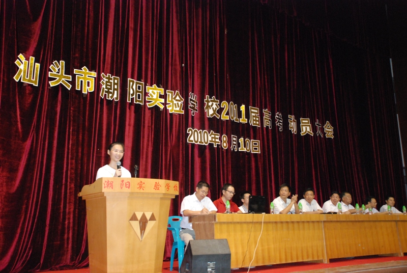 最后,高三個班同學分別宣讀了本班的班級宣言,并在林樂濤同學的帶領下,集體向高考宣誓,洪亮而充滿激情的宣誓聲,預示著本屆高三學子必能經受住300天的考驗,再創(chuàng)實驗學校的輝煌。