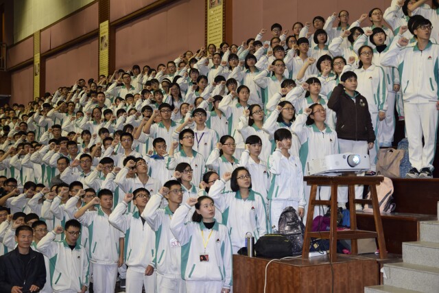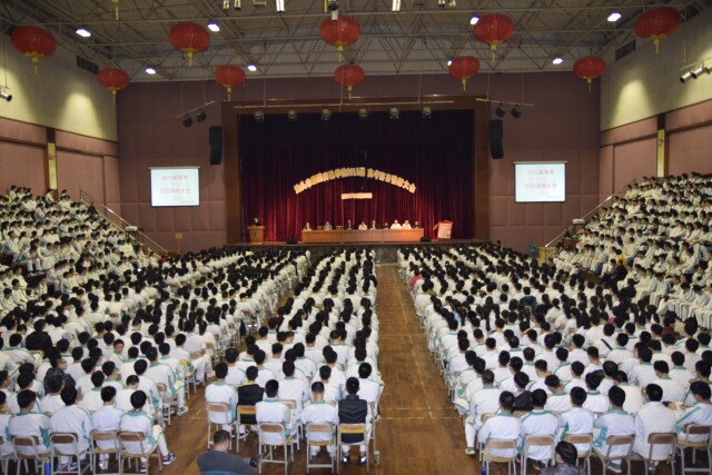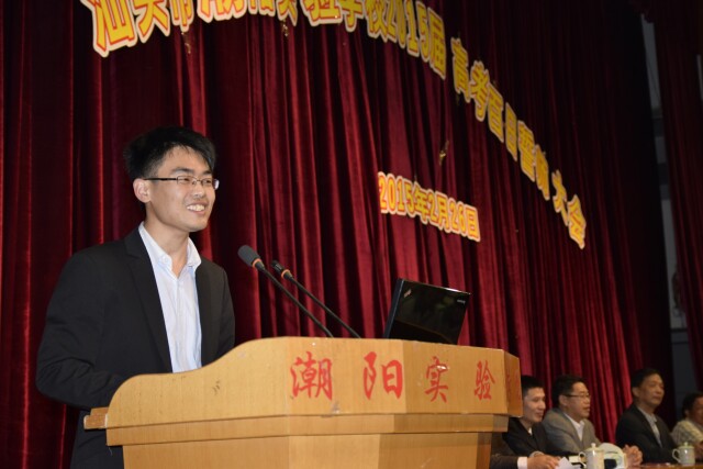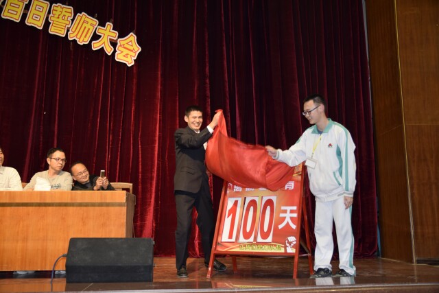 “沖刺的號(hào)角已經(jīng)吹響,壯麗的畫卷已經(jīng)鋪展!我的青春,在這神圣的時(shí)刻燃燒,我的理想,在這莊嚴(yán)的殿堂升騰!我們擁有蟾宮折桂的信心,我們擁有團(tuán)結(jié)拼搏的精神,我們擁有堅(jiān)韌強(qiáng)健的體魄,我們擁有追求卓越的豪邁!我們謹(jǐn)以青春的名義在此宣誓:珍惜一百天,讓飛翔的夢(mèng)想在六月張開翅膀!奮斗一百天,讓青春的智慧在六月發(fā)出光芒!拼搏一百天,讓父母和恩師在六月分享喜悅!讓六月成為我們美麗的紀(jì)念!” 激昂雄渾,如雄風(fēng)浩蕩,如春雷綻放,這正是我校高三學(xué)生的錚錚誓言。 2月26日晚,我校高三學(xué)生高考100天誓師大會(huì)在校體育館隆重舉行。學(xué)校創(chuàng)辦人鄭立平董事長(zhǎng)、學(xué)校副校長(zhǎng)兼高中部校長(zhǎng)張復(fù)昌、學(xué)校林少?gòu)?qiáng)副校長(zhǎng)親臨誓師大會(huì),并作重要講話。出席大會(huì)的還有小學(xué)部校長(zhǎng)鄒丹、高中部政教主任鄭楚堅(jiān)、教務(wù)主任張仕平、高二年級(jí)組長(zhǎng)譚承俊等人。 晚上8時(shí),體育館內(nèi)燈火輝煌,師生共聚,精神煥發(fā),激情澎湃。 首先,高三年級(jí)級(jí)長(zhǎng)李春雷老師偕同楊宇祺同學(xué)為百日誓師倒計(jì)時(shí)牌“揭幕”。伴隨著領(lǐng)喊的十秒倒計(jì)時(shí)的歡呼聲,大紅的紗幔緩緩揭開,標(biāo)示著高三的學(xué)習(xí)已經(jīng)進(jìn)入一個(gè)新階段的倒計(jì)時(shí)牌躍入眼簾——“離高考只有100天”,臺(tái)上臺(tái)下,頓時(shí)掌聲雷動(dòng)。 隨后李春雷級(jí)長(zhǎng)做了高考100天的動(dòng)員報(bào)告,回顧了本屆學(xué)生三年來(lái)的努力,對(duì)同學(xué)們的優(yōu)異表現(xiàn)作了高度評(píng)價(jià),他說(shuō):“同學(xué)們,三年來(lái),我們中涌現(xiàn)出許許多多像鄭培苗,肖錦菁等等忘我、執(zhí)著的讀書狂人,這樣爭(zhēng)分奪秒,這樣忘我專注的學(xué)習(xí),如果高考不成功還有天理嗎?……我們有理由相信我們高考必勝,因?yàn)槲覀冞有世界上最可愛、最勤奮、最無(wú)私奉獻(xiàn)的老師,最英明、最關(guān)心我們的董事長(zhǎng)和校領(lǐng)導(dǎo),他們竭盡才智,窮盡精力引領(lǐng)我們前行。” 李春雷級(jí)長(zhǎng)還深情地鼓勵(lì)同學(xué)們,“在高考這個(gè)平臺(tái)上,歷屆師兄師姐盡展風(fēng)采,在過(guò)去的八屆高考中,我校高考成績(jī)?cè)谏穷^乃是廣東省,都處于前茅,他們?yōu)槲覀儬?zhēng)得了榮譽(yù),樹立了榜樣,相信2015屆的學(xué)子也一定會(huì)以他們?yōu)榭�,用自己的智慧和拼搏,為母校再增榮耀!” 緊接著學(xué)生代表陳悅欣、教師代表唐建軍老師分別作了熱情洋溢的發(fā)言。尤其是唐建軍老師的發(fā)言可謂豪情萬(wàn)丈,激情四射,聲遏行云,同學(xué)們情不自禁地跟著唐老師互動(dòng),宣誓的聲浪一浪高過(guò)一浪,學(xué)生個(gè)個(gè)熱淚盈眶、信心滿懷,整個(gè)體育館,所有師生的情緒的都被唐老師的激情點(diǎn)燃。 本次大會(huì)學(xué)校還邀請(qǐng)了2010 屆畢業(yè)的學(xué)生黃家順來(lái)校作報(bào)告,黃家順作為我校一名普通的一本考生被四川大學(xué)商學(xué)院錄取,但是在四川大學(xué)卻大放異彩,2012年11月,黃加順在第五屆全國(guó)大中學(xué)生海洋知識(shí)競(jìng)賽中獲得最高榮譽(yù)“南極特別獎(jiǎng)”。2013年,黃加順作為全國(guó)唯一的一名大學(xué)生代表跟隨國(guó)家科考隊(duì)赴南極考察。黃家順和他的團(tuán)隊(duì)研發(fā)的“輕質(zhì)復(fù)合材料CNG氣瓶”已獲得4項(xiàng)國(guó)家專利授權(quán)……黃家順以自身的經(jīng)歷給了全體學(xué)生一個(gè)鼓勵(lì):不是學(xué)霸,也可成才;現(xiàn)在不是學(xué)霸,將來(lái)也可以活出學(xué)霸的精彩。黃家順同學(xué)的發(fā)言仿佛一道絢麗的彩虹照亮了每一個(gè)高三學(xué)子的心空。 會(huì)上,張校長(zhǎng)回顧了2014年我校高考的輝煌成績(jī),勉勵(lì)所有學(xué)生以高度的自信與豪情投入到學(xué)習(xí)中去,拼字當(dāng)頭,挖掘潛能,不畏艱難,奮力向上,不辜負(fù)父母的期盼,不辜負(fù)青春的理想與智慧,為自己爭(zhēng)分,為父母爭(zhēng)臉,為學(xué)校爭(zhēng)譽(yù),為家鄉(xiāng)爭(zhēng)光。并對(duì)本屆師生提出了名為“百千工程”的高要求——上清華北大的學(xué)生,本屆(本屆達(dá)17人)和歷屆合算達(dá)100人,上一本線學(xué)生,本屆達(dá)到1000人。 董事長(zhǎng)親切而質(zhì)樸的發(fā)言讓全校師生感動(dòng),他說(shuō):“我和全校的教職員工就是在座各位同學(xué)的保姆,大家有什么需求,我們一定想辦法滿足,希望大家在備戰(zhàn)高考的100天里吃得順心,學(xué)得舒心,考得歡心。” 最后,大會(huì)在各班級(jí)的宣誓中走向高潮。學(xué)生們神情肅穆,右拳高舉,齊聲高呼,他們聲音洪亮、慷慨激昂,他們的誓詞似春雷,似松濤,似戰(zhàn)鼓,使人激情豪邁、斗志昂揚(yáng)。我們有理由相信:2015年的高考,我們一定會(huì)再創(chuàng)輝煌! 誓師大會(huì)在全體高三學(xué)生聲震云霄的宣誓聲中勝利閉幕。 ![]() 學(xué)校創(chuàng)辦人鄭立平董事長(zhǎng)、學(xué)校張復(fù)昌校長(zhǎng)、學(xué)校林少?gòu)?qiáng)副校長(zhǎng) ![]() 李春雷老師偕同楊宇祺同學(xué)為百日誓師倒計(jì)時(shí)牌“揭幕” ![]() 李