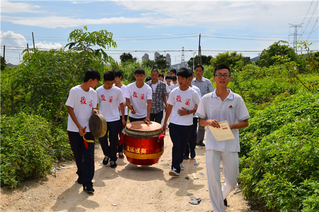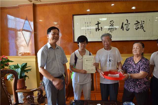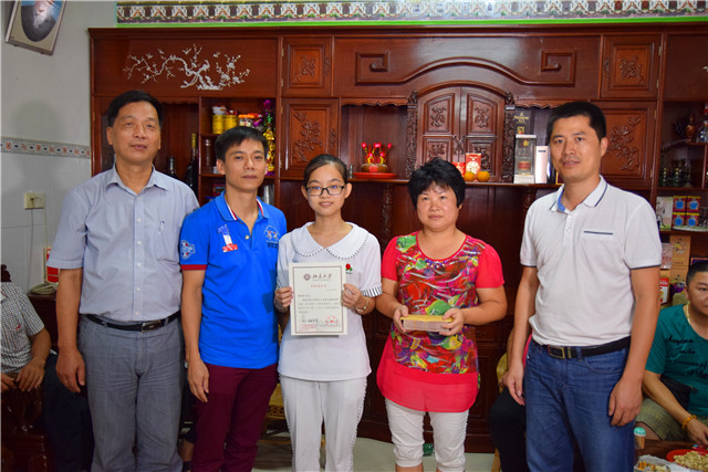我們出發(fā)的第一家是我校教師子女林晴同學的家,在接過錄取通知書和學校獎金這一時刻,這位家長,也是我校優(yōu)秀老師心情激動,眼含淚光,自己培養(yǎng)出這么多的清華北大的學生,這一刻,有這樣出色的女兒,滿足了。兩天之行,送通知書隊伍浩浩蕩蕩,走過潮陽區(qū)七個鎮(zhèn),跨越汕頭、潮州、揭陽三市,渡過榕江,把每份通知書和學校的獎金送達每位家長手中,看著一張張洋溢著幸福的笑臉,聽著一聲聲深情的祝賀,家族相親們熱情的歡迎和夾道歡送,家長們千言萬語的感謝,讓我們收獲喜悅,也感受到重擔在肩,教育關系到千家萬戶,是每個家庭的頭等大事,是播種希望的種子。同時也堅定了我們辦好學校的信心,要把學校辦成粵東,乃至全省最好的學校,讓更多學生能夠在潮實實現(xiàn)他們的夢想。同時也感謝我們可親、可愛、可敬的老師們,是他們的付出,才收獲了這們多的人才,也祝福實驗學校明年更加燦爛輝煌。