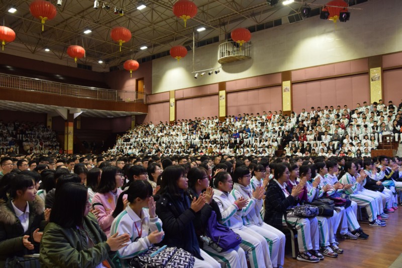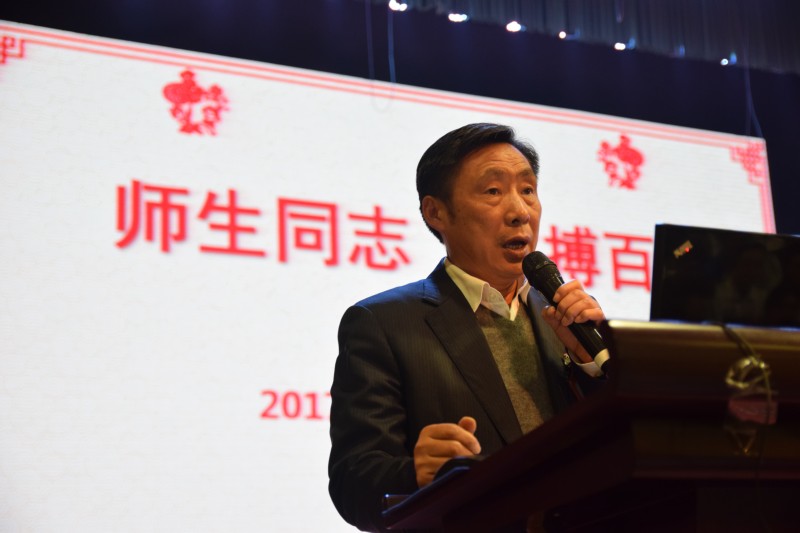 鄭董事長出席會議,并作了重要講話。他首先回顧了學(xué)校高中部13年辦學(xué)歷程,感謝同學(xué)們對學(xué)校的信任,感謝老師們辛勤的付出。他表示,在一百天高考沖刺的關(guān)鍵時刻,學(xué)校將大力支持同學(xué)們的復(fù)習(xí)備考,進(jìn)一步提高三餐的營養(yǎng),做好后勤保障工作。他號召同學(xué)們增強(qiáng)刻苦精神,激勵大家創(chuàng)造2017屆新的輝煌。鄭董事長語重心長、充滿愛心的講話,感動了每一位同學(xué),激起了一陣陣熱烈的掌聲。