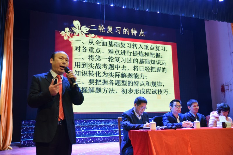 高三年級組長李劍老師代表高三年級組作了發(fā)言。李老師指出了二輪復(fù)習(xí)的特點,對二輪復(fù)習(xí)可能出現(xiàn)的各種心理問題和學(xué)習(xí)問題一一進(jìn)行了分析,對同學(xué)們可能面臨的壓力進(jìn)行了疏導(dǎo)。李老師的講話,有很強(qiáng)的針對性,同學(xué)們受益匪淺。