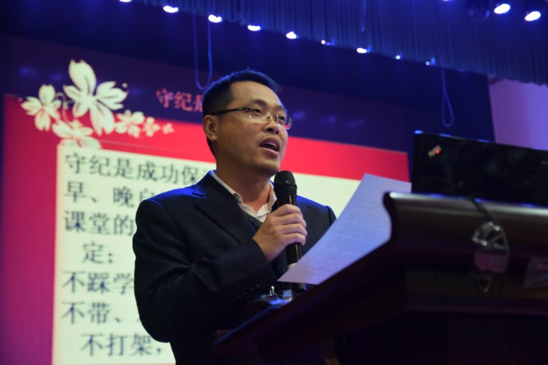 班主任代表王金良老師回顧了本屆高三一路走來的歷程,他動人的講述,激起了同學(xué)們曾經(jīng)的美好回憶。王老師總結(jié)了本屆高三管理上的特色,要求同學(xué)們和年級組積極配合,以永不屈服的姿態(tài),在最后一百天里,為自己的青春作最好的證明。王老師動情的演講,感動了同學(xué)們,激起了大家百日沖刺拼搏的斗志。