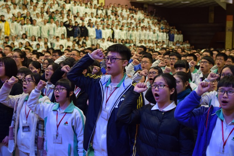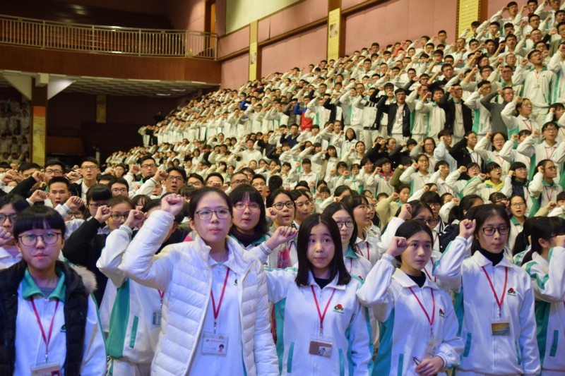 最后,2017屆高三同學(xué)進(jìn)行了最激動人心的百日宣誓。同學(xué)們用青春的名義鄭重宣誓:用汗水去澆灌高考成功的花朵,用拼搏去鑄就六月成功的輝煌;讓父母以我們而驕傲,讓老師以我們而自豪。錚錚誓言,似春雷,似戰(zhàn)鼓,鏗鏘有力,振奮人心,把大會推向高潮。