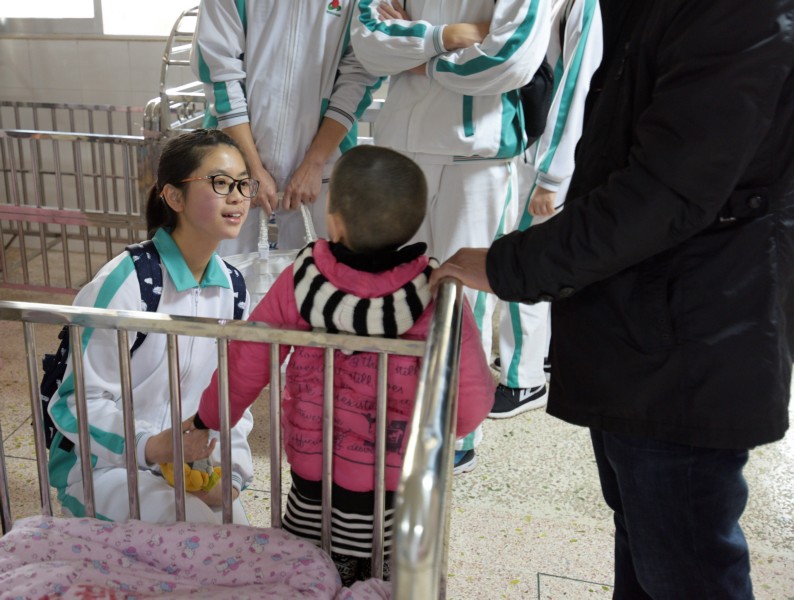 學(xué)生們給福利院孤殘兒童帶來了一些生活必需品,水彩筆,筆記本和玩具。在福利院領(lǐng)導(dǎo)的帶領(lǐng)下,我們來到五樓、六樓的兒童院,與院中孤殘兒童舉行了近距離接觸。福利院工作人員細(xì)心為學(xué)生們介紹福利院孤殘兒童的生活情況,據(jù)了解,孤兒院里面的兒童絕大部分是殘疾、腦癱或是患有先天疾病的兒童,從小遭父母遺棄又被病痛折磨�?吹竭@些命運不幸的孩子們,學(xué)生們很受觸動。