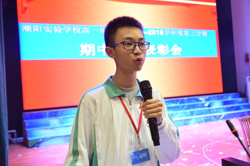 林其宏主任代表學校宣讀了期中表彰的學生名單,對文、理培優(yōu)班和平行班的學習標兵、學業(yè)優(yōu)秀的學生,進行了表彰;接著,還表彰了各班的進步之星、德育之星以及期中考試優(yōu)勝班級。他代表學校對以上同學表示祝賀,希望高一年級的學生能以他們?yōu)榘駱訆^勇拼搏,再創(chuàng)佳績。