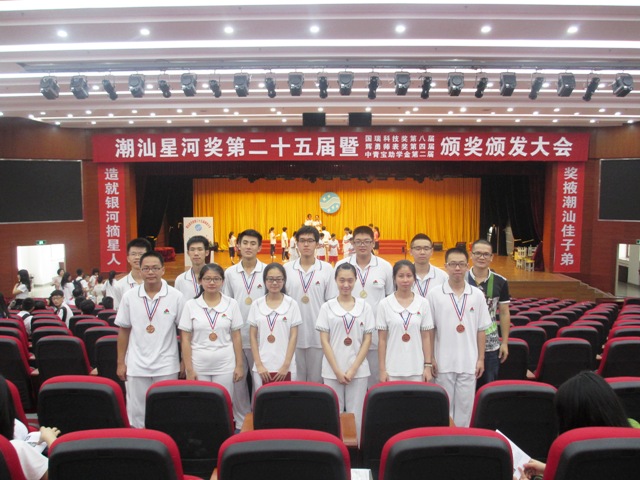 2014年8月20日,第二十五屆潮汕星河獎(jiǎng)暨第八屆國(guó)瑞科技獎(jiǎng)、第四屆輝勇師表獎(jiǎng)、第二屆中青寶助學(xué)金在揭陽(yáng)市隆重舉行頒獎(jiǎng)大會(huì),我校獲獎(jiǎng)學(xué)生在楊漢葵老師帶領(lǐng)下,參加了本次頒獎(jiǎng)大會(huì)。
