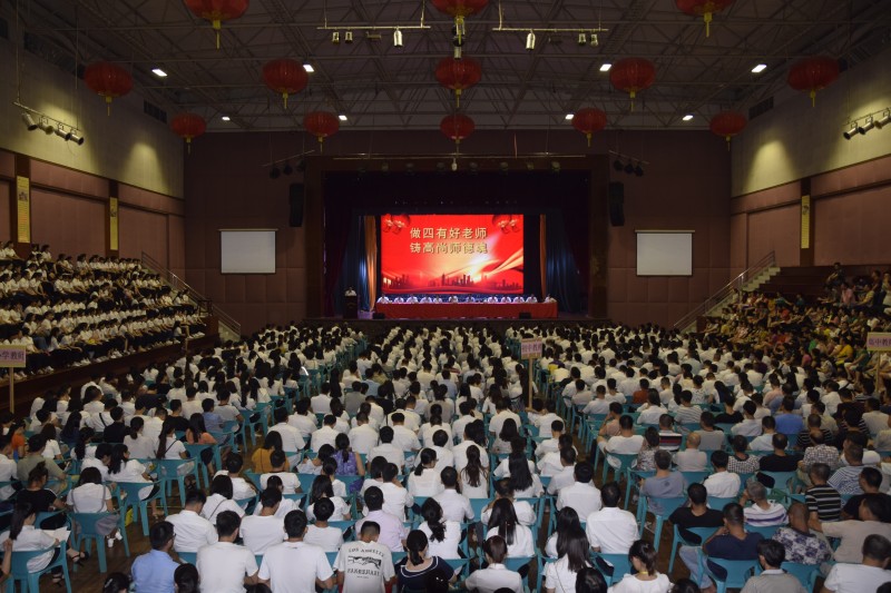 大會上,張復昌校長發(fā)表了題為《做四有好老師 鑄高尚師德魂》的精彩講話,簡要介紹了新學年學校的基本概況,總結(jié)回顧假期以及上學期各學部的工作,表彰了一大批在教學教育服務等方面敬業(yè)愛崗、勤勤懇懇、默默耕耘、做出突出貢獻的教職員工。指出,全體教職員工在鄭董事長帶領下努力奮斗、大膽創(chuàng)新,實現(xiàn)2017年中、高考的新突破。張校長著重論述了做“有理想信念、有道德情操、有扎實學識、有仁愛之心”的“四有”老師的重要性和必要性,并對新學期的工作提出“努力拼搏 再創(chuàng)佳績;全面發(fā)展夯實基礎 質(zhì)量數(shù)量同步提高;遵規(guī)守紀 和衷共濟”三點要求。最后鄭立平董事長發(fā)表了重要的講話,他指出,學校要著重培養(yǎng)一支年輕的充滿活力的高素質(zhì)的教師隊伍,強調(diào)全體教職員工要時刻保持危機意識和憂患意識,希望全體教職工懷著飽滿的工作熱情和高度的責任意識,實實在在用心工作,共同拼搏,開創(chuàng)潮陽實驗學校更加輝煌燦爛的明天。