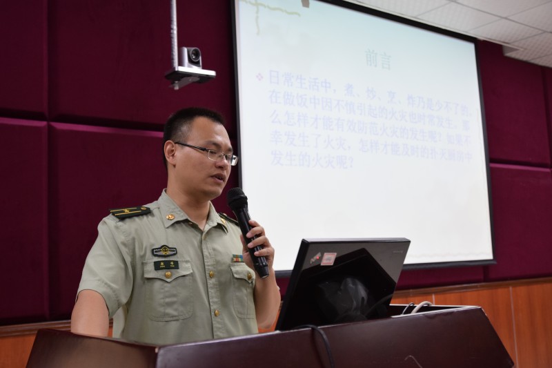 2017年9月17日上午,學校后勤部邀請了區(qū)消防大隊鄭參謀到校,為學校食堂員工、學校保安,做了一場消防知識培訓及防火滅火演練。整個培訓分二個部分,第一部分是消防知識學習,第二部分防火滅火演練。