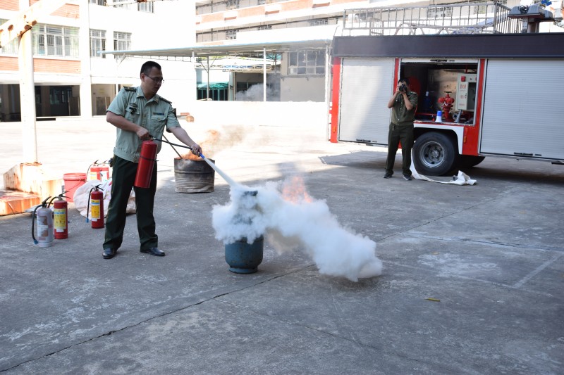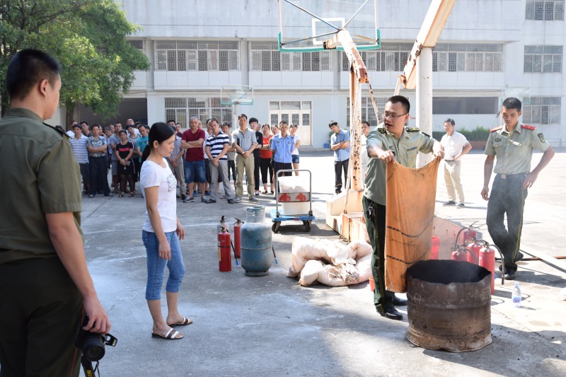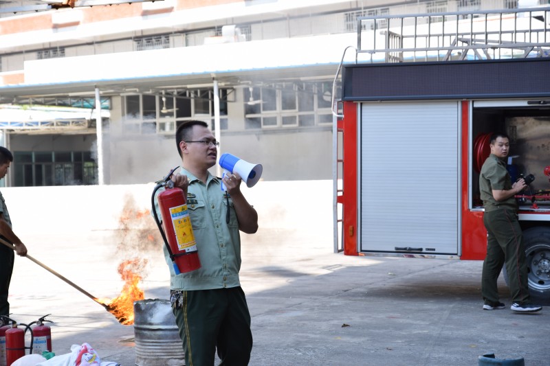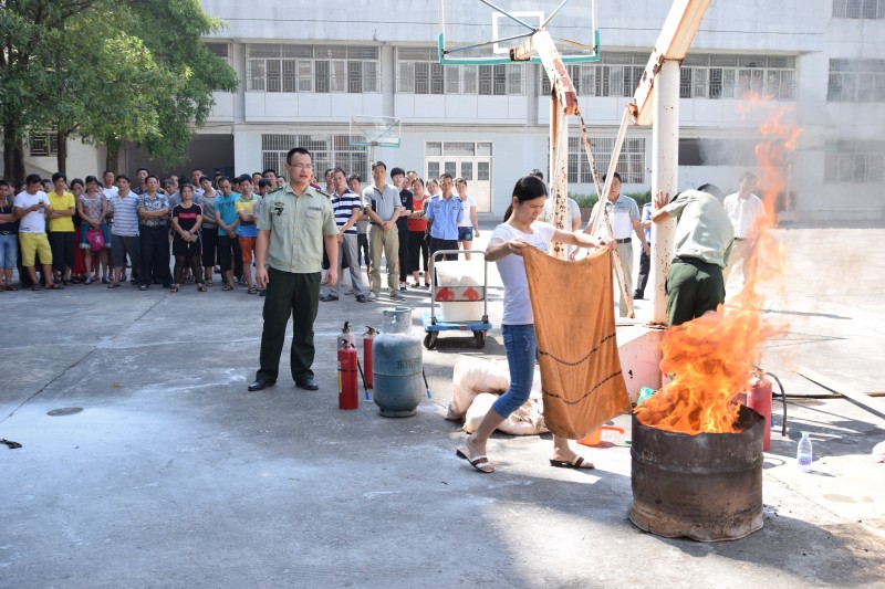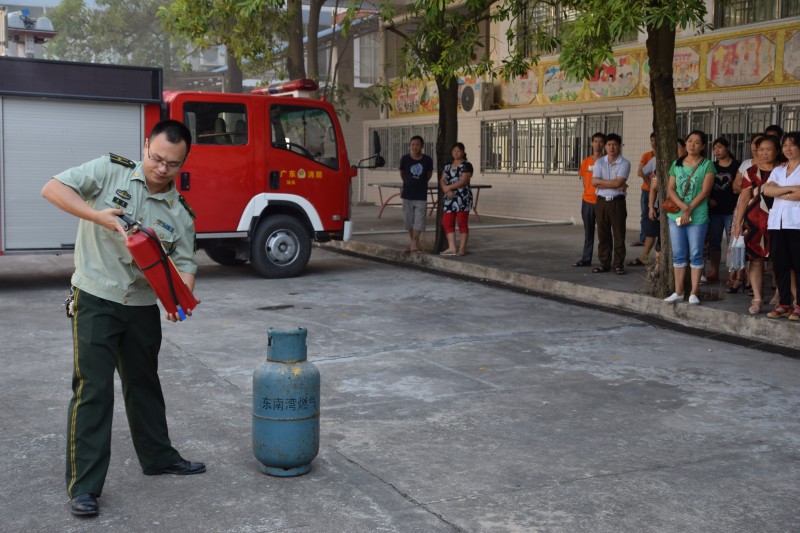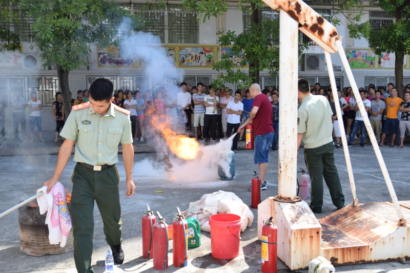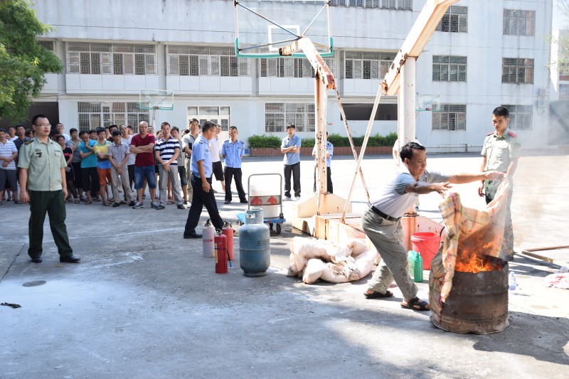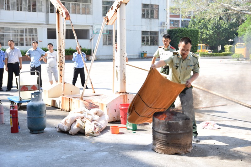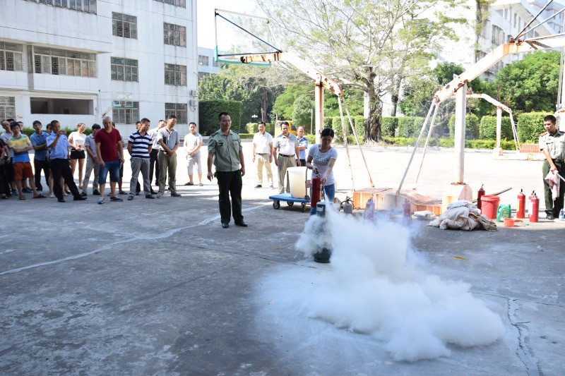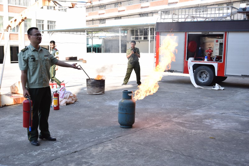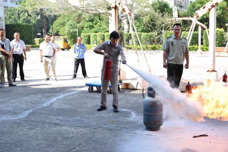在實際操作演練中,鄭參謀就如何使用手提式干粉滅火器和窒息法滅火進行現(xiàn)場操作演練,同時我們員工也大膽的進行汽瓶滅火,油鍋窒息滅火等科目實際操練。