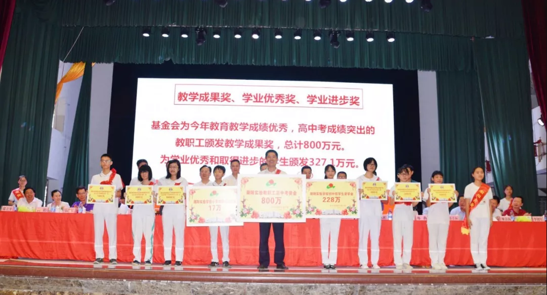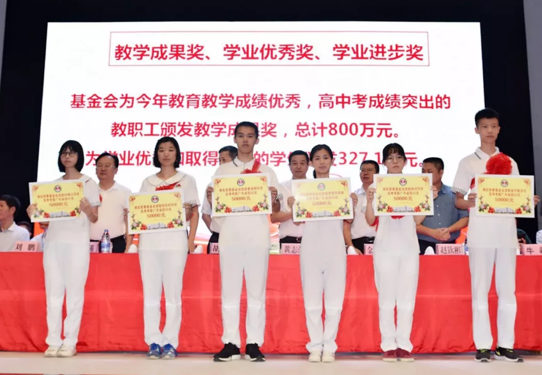 接下來潮陽實(shí)驗(yàn)學(xué)校教育慈善基金會(huì)執(zhí)行理事長鄭世文先生宣讀獎(jiǎng)教獎(jiǎng)學(xué)助學(xué)的決定,表彰獎(jiǎng)勵(lì)高考成績優(yōu)異的學(xué)子和為今年高考做出突出貢獻(xiàn)的教職員工,資助家境貧困的大學(xué)生。