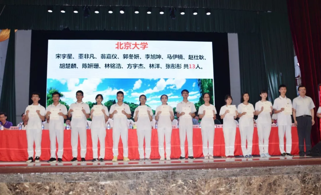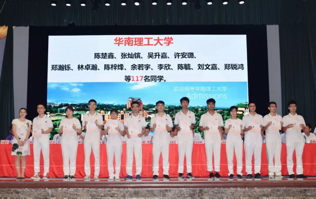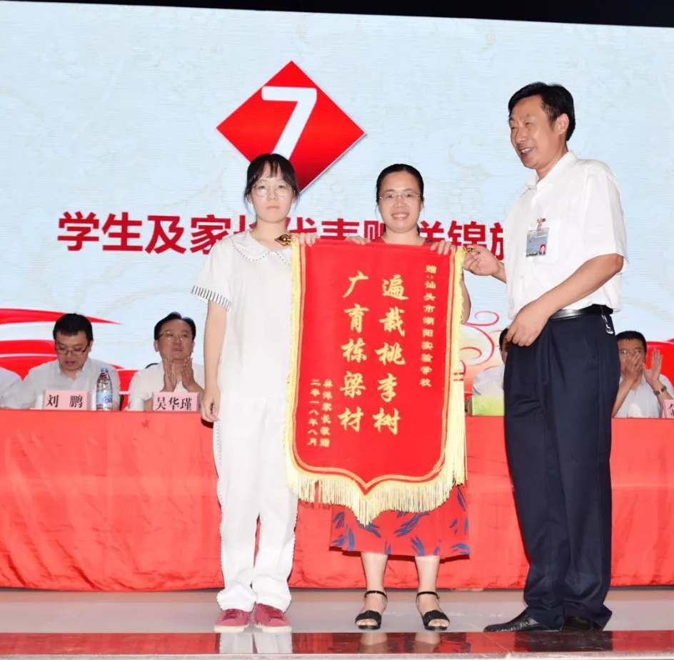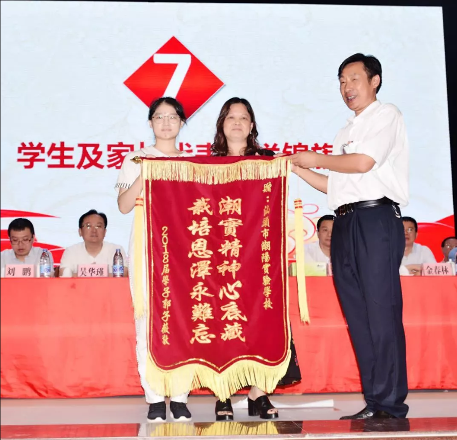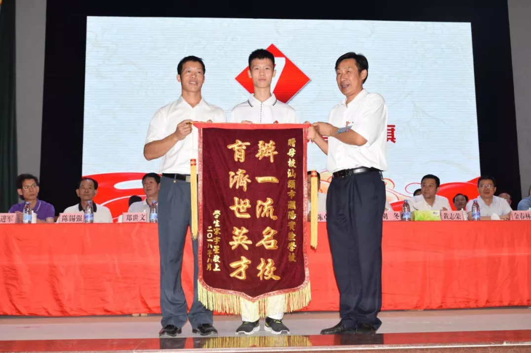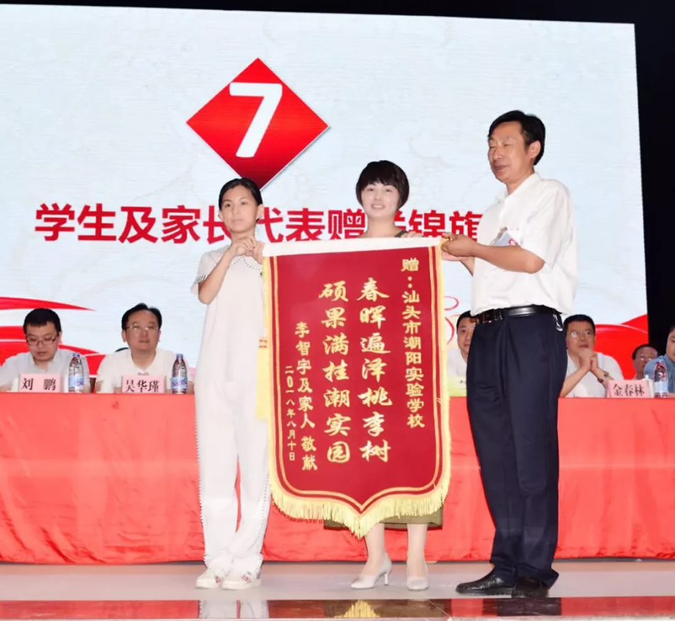 隨后,來自北京大學(xué)、清華大學(xué)等6所著名高校的領(lǐng)導(dǎo)、老師向我校獲錄的學(xué)生頒發(fā)錄取通知書,宋宇星及家長、林洋及家長、李智宇及家長等24位考取北京大學(xué)、清華大學(xué)的學(xué)生及其家長向?qū)W校贈(zèng)送錦旗,表達(dá)他們對(duì)母校衷心的感謝。為表彰、獎(jiǎng)勵(lì)潮陽實(shí)驗(yàn)學(xué)校2018年高考做出的突出貢獻(xiàn),清華大學(xué)為我校頒發(fā)了優(yōu)質(zhì)生源中學(xué)牌匾,蒞臨大會(huì)的部分嘉賓、領(lǐng)導(dǎo)為我校進(jìn)行揭牌儀式。