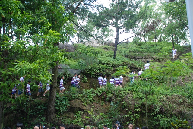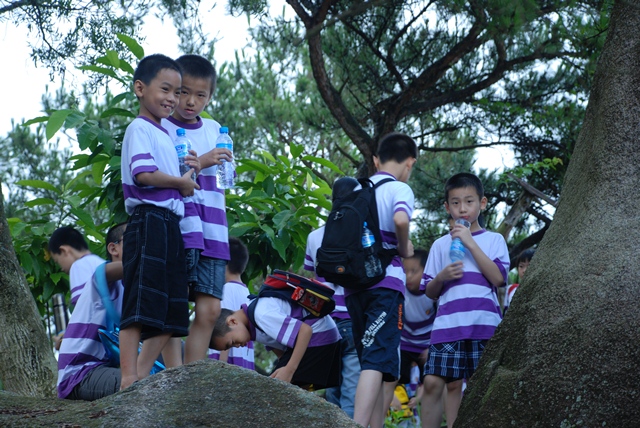 由于參加此次夏令營的同學(xué)年齡參差不齊,小的才6歲,大得卻已經(jīng)15歲。為了讓各個(gè)年齡段的小朋友們都能體會(huì)到登山的樂趣,營部將登山活動(dòng)路線分為無危險(xiǎn),低強(qiáng)度,高強(qiáng)度三種路線。其中預(yù)備班和一二年級的小朋友登至“曲水流”附近即可;三四年級的同學(xué)則可適當(dāng)爬至“七星巖”;而大一些的同學(xué)在力量允許的情況下,則可攀至山頂。