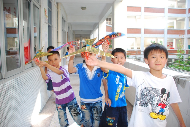 一根小竹片,兩條橡皮筋,兩張五彩的羽翼,幾個塑料小零件就支撐起了一只栩栩如生的飛鳥。這樣的技藝堪稱難學(xué),但夏令營的老師們硬是憑著一種韌勁和干勁把這種技藝鉆研出來了。