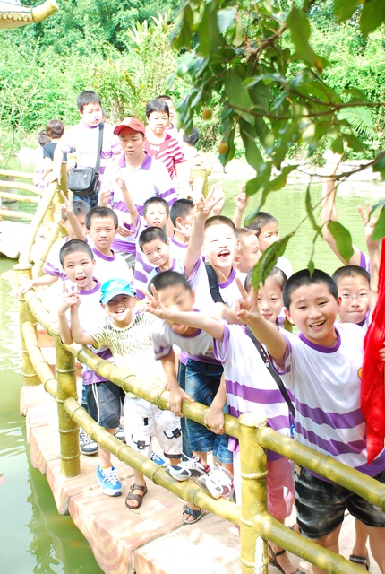 沐浴著初升的朝陽,夏令營的營員們一路歡歌笑語向澄海“科隆千樹園”風(fēng)景區(qū)進發(fā)。經(jīng)過一個多小時的車程,一下車“科隆千樹園”古香古色的大門便呈現(xiàn)在我們的眼前。