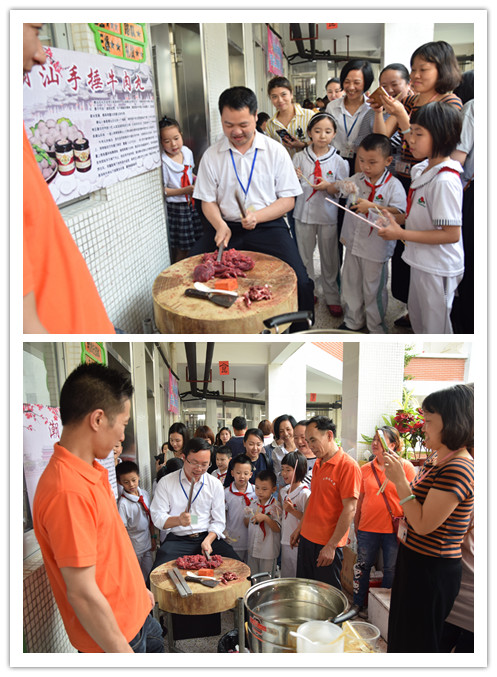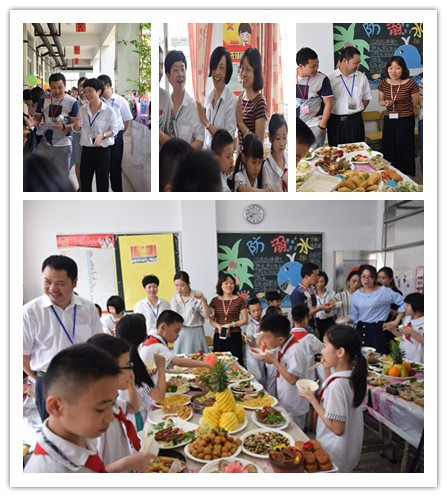 在美食節(jié)前期,每個班級經(jīng)過宣傳和各項準備將活動井然有序地安排到每一個細節(jié),從確定美食到餐具的準備,再到美食信息的采集整理和展示分享。熱心的家長們精心準備了各種秀色可餐的美食,真可謂是特色美食,精品美食,傳統(tǒng)美食,……一應俱全。還有許多看似普普通通的食材,在美媽們的親手精心制作后,是那么精致、美味,凸顯了潮汕人民的大智慧,也融入了濃濃的母愛。最有特色的是家長們還把潮汕有名的“手錘牛肉丸”的制作帶到了現(xiàn)場,讓孩子們親身感受現(xiàn)做現(xiàn)吃的新鮮、美味、Q彈�;顒訒r,家長們也參與其中,與孩子共同享受親子分享的快樂時光。“美食主持”、“美食小導游”們更是熱情大方,向來往的嘉賓介紹了各種美食的來源,制作工藝與歷史典故。小學部鄒校長、王校長、秦校長等學校領導給孩子們提前送來了“六·一”的祝福,和孩子們一同分享美食,將美食品評活動推向高潮!最后在大家依依不舍下活動劃下了完美的句號。