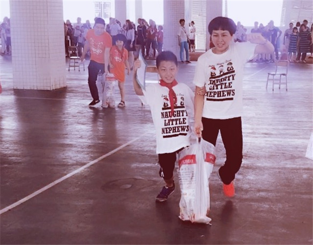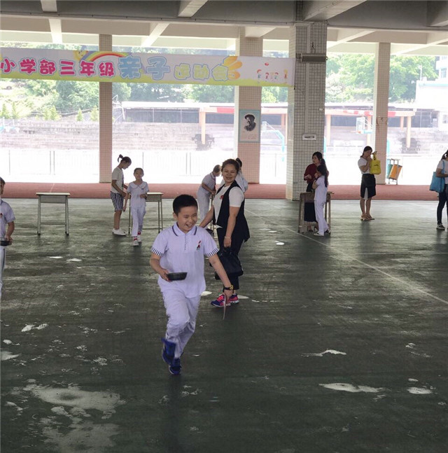 接著家長(zhǎng)和孩子在老師的帶領(lǐng)下,轉(zhuǎn)場(chǎng)到風(fēng)雨操場(chǎng)開(kāi)展“親子趣味運(yùn)動(dòng)會(huì)”,活動(dòng)項(xiàng)目包括“雙龍戲珠”、“兩人三足”、“千里傳音”、“金豆搬家”。每一個(gè)家庭身著或帥氣或溫馨的親子服,懷揣著《親子運(yùn)動(dòng)會(huì)游戲記錄卡》,在指定的入口處排著整齊的長(zhǎng)龍。