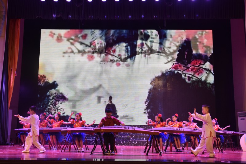 頒獎典禮在主持人的節(jié)日祝福中拉開了序幕。才藝之星的傾情演出點燃了現(xiàn)場觀眾的熱情。在今天的頒獎典禮上,才藝之星和小演員們或歌或舞,或書或畫,精彩節(jié)目輪番上演,舞臺上高潮迭起,精彩不斷,臺下氣氛熱烈,喜氣洋洋。此次頒獎典禮上的很多節(jié)目都是由多種藝術元素融合創(chuàng)編而成,給人耳目一新的感覺。如集古箏、書法、武術于一體的節(jié)目《游子吟》,藝術畫面感強,給人視覺、聽覺上的震撼。《酷炫街籃》將街舞和籃球完美融合,給大家?guī)頃r尚、勁爆的藝術享受。在汕頭市中小學校園合唱節(jié)比賽中榮獲一等獎的合唱節(jié)目《月亮粑粑》也走上了舞臺,觀眾們在天籟童聲的浸潤中享受藝術帶來的快樂�;顒映掷m(xù)了近一個多小時,孩子們在活動中展示了自己,陶冶了情操,愉悅了身心。
