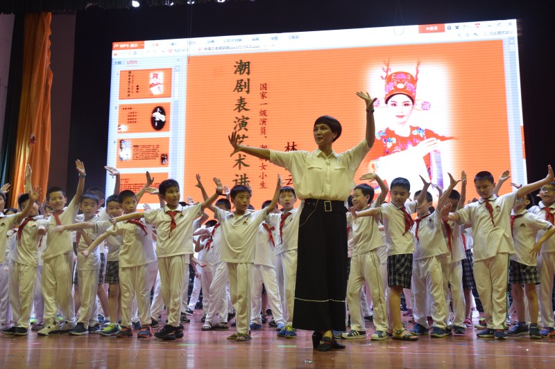 活動中,廣東潮劇院國家一級演員林燕云老師詳細全面而且形象生動的講解、表演,以及耐心的指導,讓孩子們對潮劇有了較為全面的了解。林老師是潮劇大師,是潮汕的名人,她向我們展現的不僅僅是戲曲的成功演繹,更多的是他她成功背后那些讓人折服的精神,例如從小立志勤學苦練。