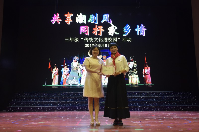 為了培植孩子們的愛國情懷,培養(yǎng)他們愛對家鄉(xiāng)的熱愛之情,小學部三年級組全體師生在6月8號第6、7節(jié)課于體育館特別舉行了“共享潮劇風,同書家鄉(xiāng)情”的傳統(tǒng)文化進校園活動。