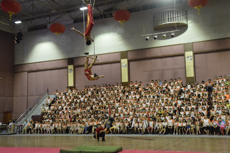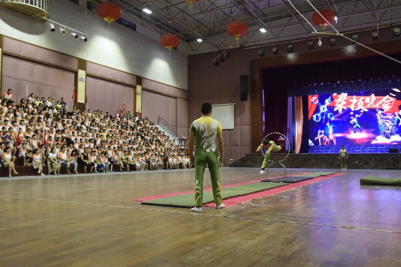 2017年7月13晚19:00,潮陽實驗學(xué)校體育館內(nèi)座無虛席,數(shù)千名營員用陣陣熱烈的掌聲,向汕頭雜技團的演員們表達(dá)了濃濃的謝意,對他們那令人佩服的高超技藝表示崇高的敬意。