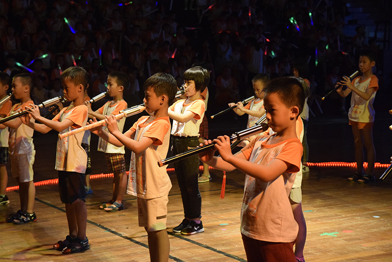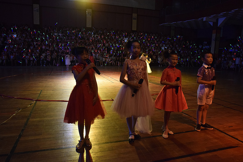 五顏六色的熒光點亮了營員們的笑臉;陣陣掌聲、尖叫聲點燃了體育館內(nèi)的激情。7月28日晚7點,汕頭市潮陽實驗學(xué)校小學(xué)部2017年“快樂夏令營”燭光晚會在一段熱鬧的拉歌比賽中拉開了序幕。 今晚的主持陣容強(qiáng)大,由主持連所推選出的12位優(yōu)秀營員,分為三組擔(dān)任本次燭光晚會的主持人,他們自信大方,聲音甜美。隨著主持人的報幕,以可愛幽默的《大王叫我來巡山》打頭陣的歌曲聯(lián)唱節(jié)目嗨翻全場,臺上臺下歡歌一片,大家手里的熒光棒讓整個體育館成了一個夢幻的世界。悠揚的巴烏《我們的田野》把營員們帶入一個綠色的奇特世界;優(yōu)雅的華爾茲讓我們看到了營員們的翩翩風(fēng)度;舞蹈連同學(xué)扎實的基本功讓觀眾們驚嘆不已;瀟灑的籃球表演引來聲聲喝彩;婀娜的孔雀舞、柔中帶剛的太極表演讓每個營員屏住了呼吸;熱辣的爵士舞和街舞把整個晚會推向高潮……一個個節(jié)目猶如一顆顆珍珠,晚會就像一串閃亮的項鏈,穿進(jìn)了實校學(xué)子的多彩童年,也穿進(jìn)了孩子們的無限歡樂,在孩子們童年的殿堂閃耀著幸福的光芒。 燭光雖已漸弱,但夏令營的歡樂熱浪仍在沸騰,我們共同期待著明年的夏令營燭光晚會再相聚。
