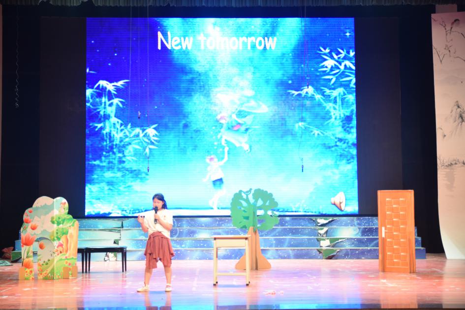 首先是四年級學(xué)生們帶來的英語歌曲三連唱,《Good time》輕快悅耳,點(diǎn)燃現(xiàn)場氣氛;《Let it go》輕靈飄逸,繞梁不絕; 而《New tomorrow》則恰如其名,給予觀眾全新的視聽體驗(yàn)