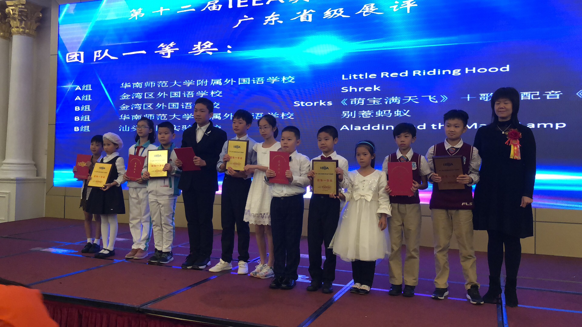 3月25日上午8:30,潮實師生迎來了此次英語賽事的輝煌戰(zhàn)績,我們取得了個人一等獎8名,二等獎10名,三等獎15名,優(yōu)勝獎14名的好成績,每個層次的獎項均處于省內較高水平;團體英語劇《阿拉丁神燈》獲得一等獎,《小紅帽》獲得二等獎,《三打白骨精》和《龜兔賽跑》獲得三等獎,秦世進副校長被授予“優(yōu)秀領隊”榮譽稱號,學校獲得了“優(yōu)秀組織獎”,秦世進副校長作為此次活動的唯一學校代表應邀演講。