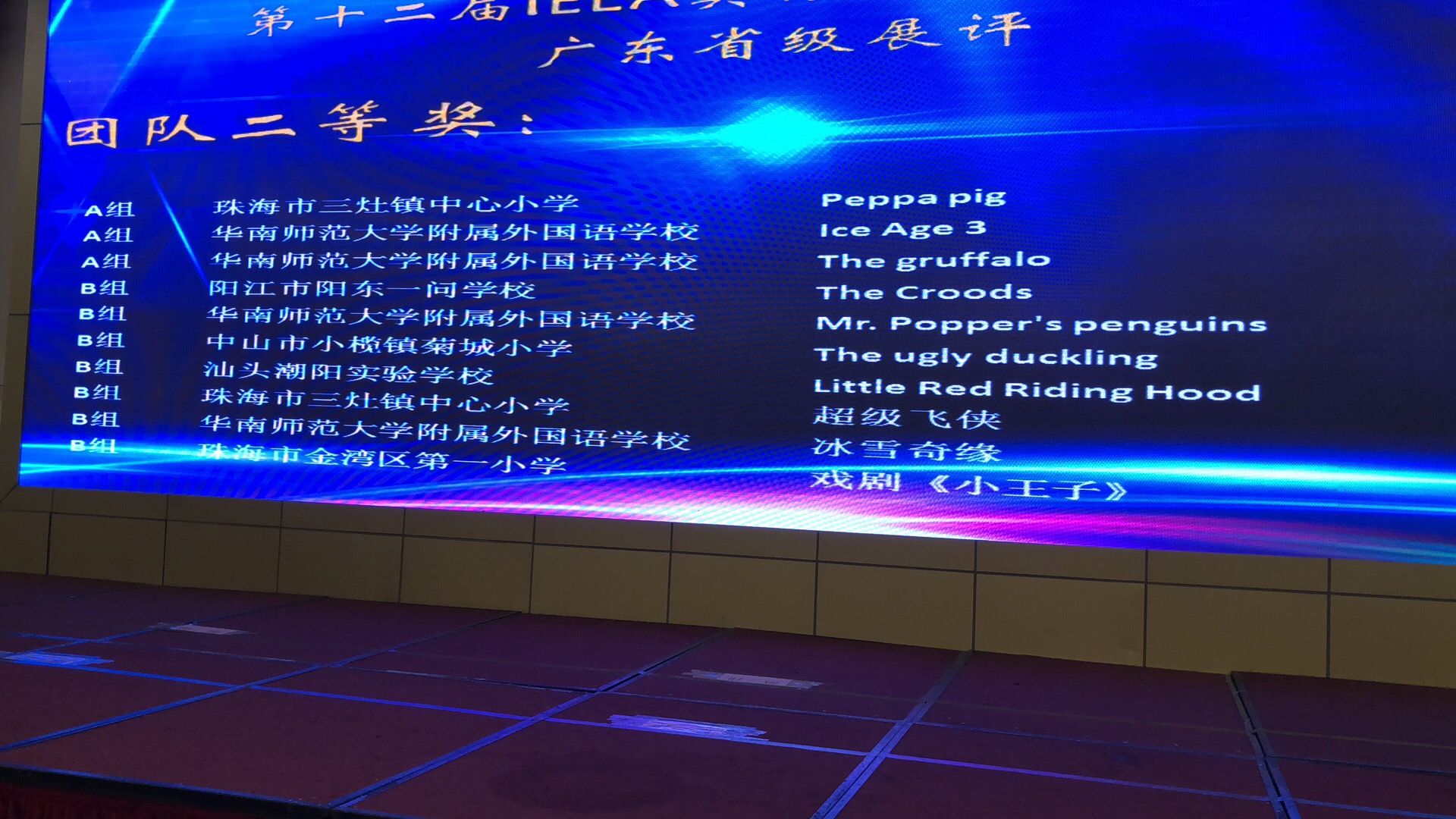 英語劇《三打白骨精》、《龜兔賽跑》獲得三等獎