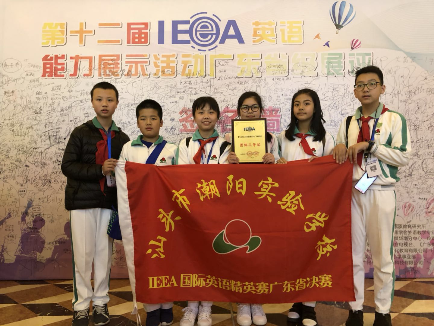 2018年3月23日,在小學部秦世進副校長的組織和帶領下,通過層層選拔的47個英語口語佼佼者,順利到達第十二屆IEEA國際英語精英賽的廣東總決賽現(xiàn)場——江門市新會。一下車,學生們顧不上旅途的勞累,就投入到了個人賽和團體賽的備戰(zhàn)準備中。