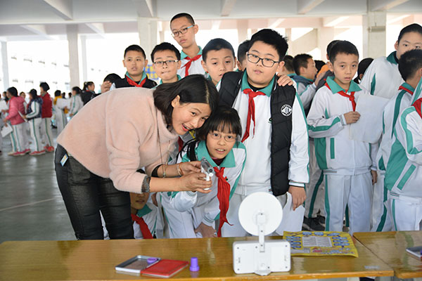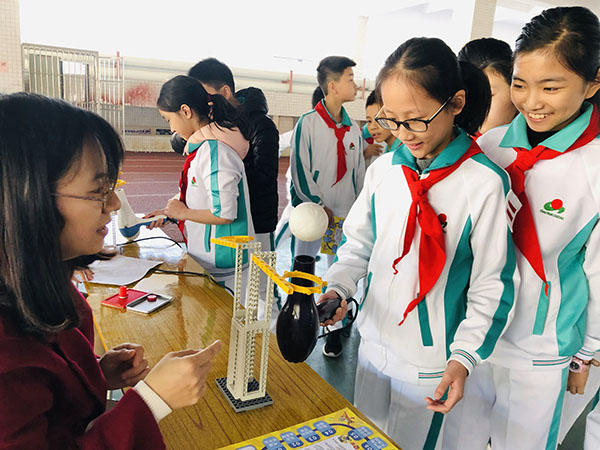 為提升學�?茖W教育水平,讓科學真正地走進校園,2018年12月17日下午,臺灣元智大學的力翰科學團隊來到我校小學部,在風雨操場開展了樂趣橫生的科學闖關游戲,讓隊員們有機會真正體驗到科學的奧秘及樂趣。