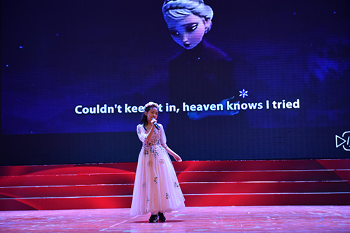 《Let it go》以百老匯式的音樂唱進(jìn)了我們的心。林熹婷同學(xué)用悠揚(yáng)的歌聲、曼妙的舞姿,將歌曲內(nèi)容演繹得活靈活現(xiàn)。在她的傾情演繹下,同學(xué)們仿佛置身于《冰雪奇緣》這部影片中。