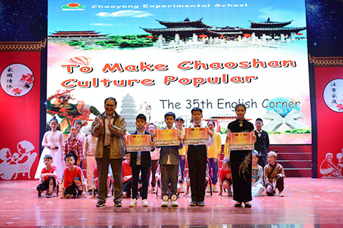 本次活動的主題是:讓潮汕文化潮起來!在學(xué)部領(lǐng)導(dǎo)的關(guān)心、指導(dǎo)下,在李志平、肖奕純、鄭學(xué)嫻、王鑫等英語老師的精心策劃下,英語角的同學(xué)們通過多種多樣的形式為三、四年級的師生們獻(xiàn)上了一場英語學(xué)習(xí)的視聽盛宴。廣東第二師范學(xué)院教育學(xué)院院長周峰教授、廣東第二師范學(xué)院教育學(xué)院黎曉君博士、廣東第二師范學(xué)院師資培訓(xùn)處劉建強(qiáng)博士也參加了本次活動�;顒悠陂g氣氛熱烈,臺下同學(xué)認(rèn)真觀看節(jié)目,積極地參與到英語口語學(xué)習(xí)中。