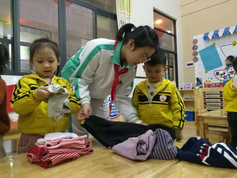 旋風(fēng)小隊(duì)的隊(duì)員們進(jìn)入幼兒園,以身示范,教小朋友們疊被子、洗碗筷,做手工;
