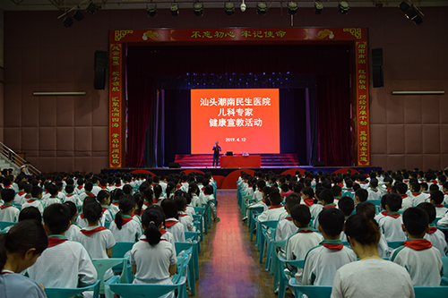 2019年4月12日下午2:00,汕頭市潮陽實(shí)驗(yàn)學(xué)校第二聯(lián)合中隊(duì)邀請(qǐng)到廣東省醫(yī)學(xué)會(huì)兒科分會(huì)小兒腎臟組委員、汕頭市潮南民生醫(yī)院兒科專家吳偉森主任蒞臨我校開展兒童衛(wèi)生保健與疾病預(yù)防的宣教活動(dòng)。第二聯(lián)合中隊(duì)全體輔導(dǎo)員和少先隊(duì)員共同參加,活動(dòng)由第二聯(lián)合中隊(duì)輔導(dǎo)員唐麒麟老師主持。汕頭市潮陽實(shí)驗(yàn)學(xué)校小學(xué)部王修穩(wěn)副校長(zhǎng)、政教處肖海燕副主任親臨活動(dòng)現(xiàn)場(chǎng)。
