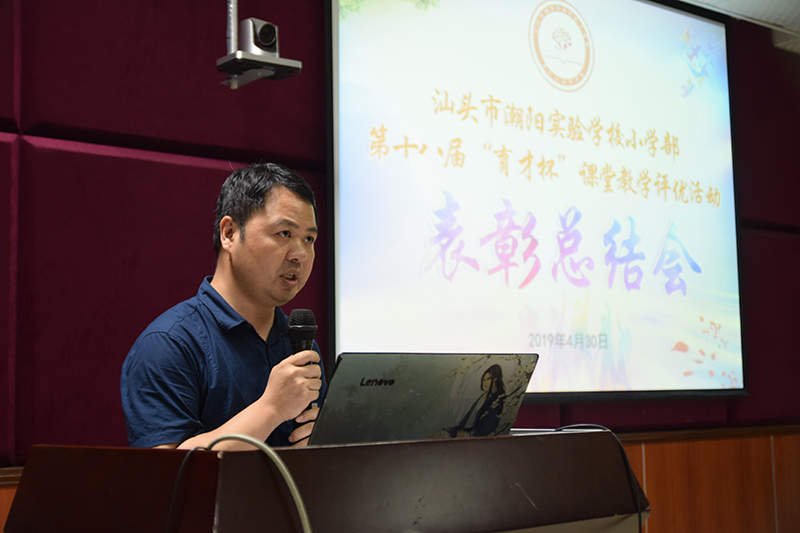 2019年4月30日晚7點,潮陽實驗學(xué)校小學(xué)部全體教師在學(xué)部四樓多功能廳參加第十八屆“育才杯”課堂教學(xué)評優(yōu)活動表彰總結(jié)大會。學(xué)校鄭益烽董事、學(xué)部鄒丹校長、全體行政出席了本次活動。活動由學(xué)部秦世進副校長主持。