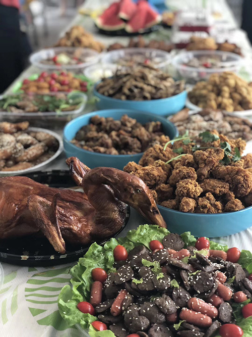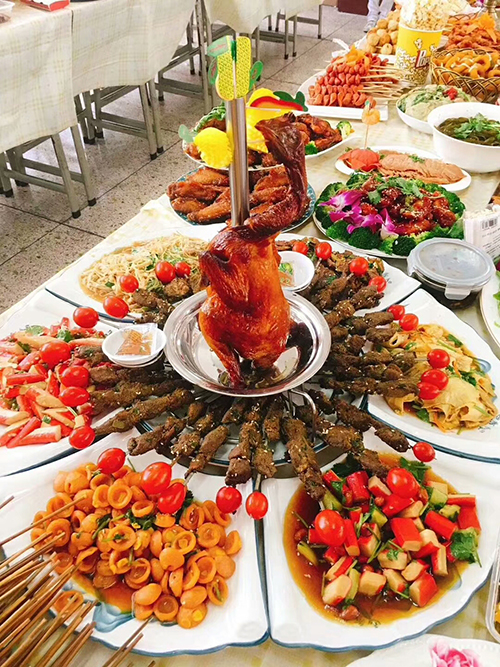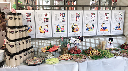 活動現(xiàn)場,17個中隊室和走廊上,一桌桌經(jīng)過精心設(shè)計和擺盤造型的美食映入眼簾,讓人垂涎欲滴。