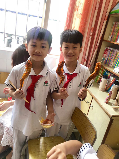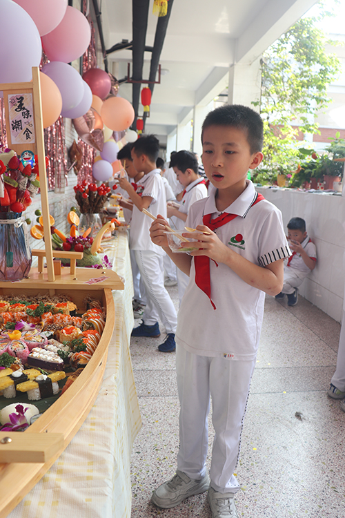 美食品鑒活動備受學部領(lǐng)導的高度重視,汕頭市潮陽實驗學校小學部鄒丹校長、王修穩(wěn)副校長、秦世進副校長、教務(wù)處馬海英副主任、李晶晶副主任、政教處黃湘容副主任、肖海燕副主任等親臨活動現(xiàn)場指導,和隊員們一同分享美食,將美食品評活動推向高潮!