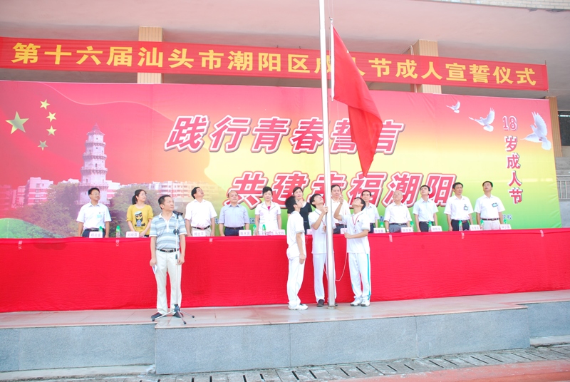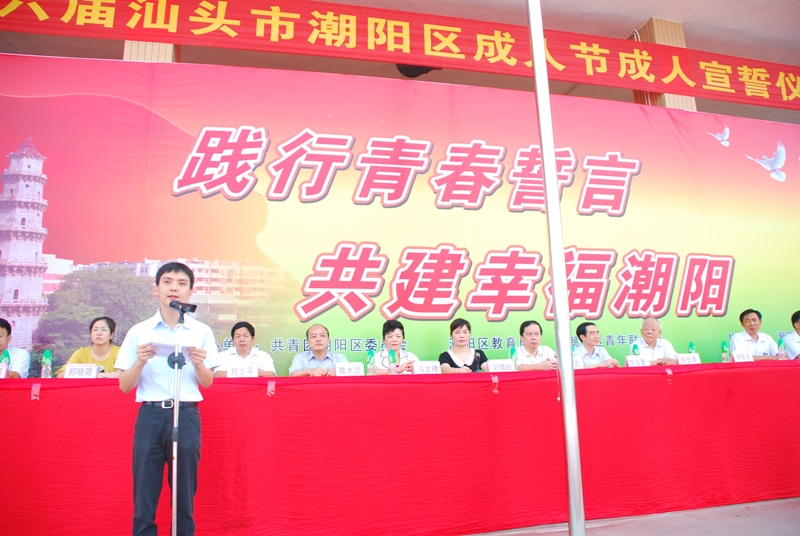 2010年9月27日,汕頭市潮陽區(qū)第十六屆成人節(jié)宣誓儀式在潮陽實(shí)驗(yàn)學(xué)校隆重舉行,本次活動(dòng)主辦單位是共青團(tuán)潮陽區(qū)委員會(huì)、潮陽區(qū)教育局以及潮陽區(qū)青年聯(lián)合會(huì),由汕頭市潮陽實(shí)驗(yàn)學(xué)校協(xié)辦。