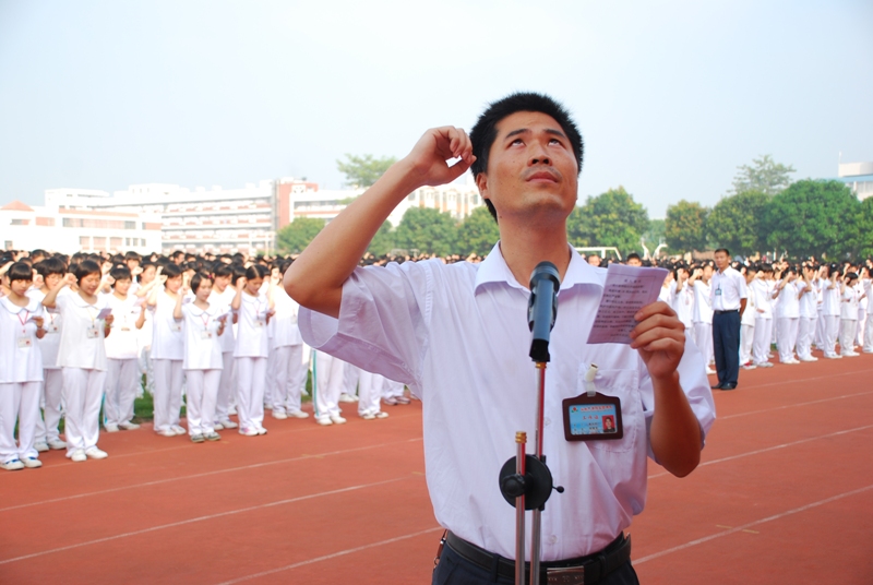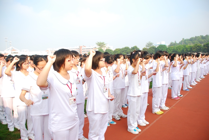 緊接著,汕頭市潮陽實(shí)驗(yàn)學(xué)校高中部全體同學(xué)在政教處鄭楚堅(jiān)主任的帶領(lǐng)下,開始宣誓。同學(xué)們莊嚴(yán)地舉起右手,懷著滿腔的熱情,許下了自己的青春誓言。