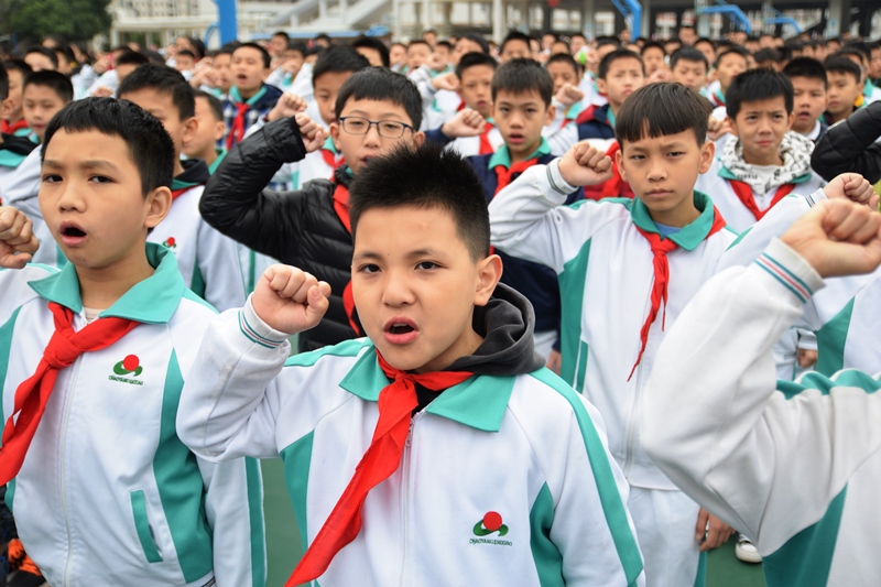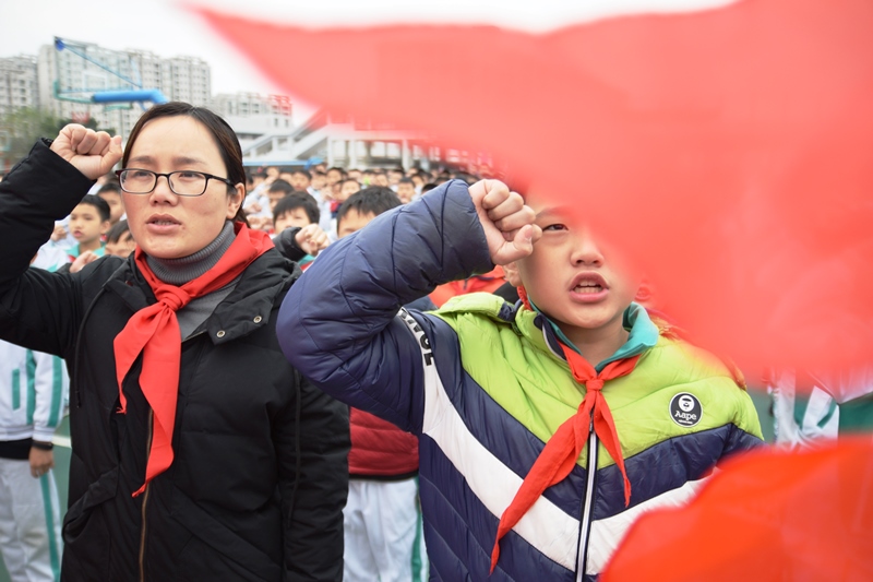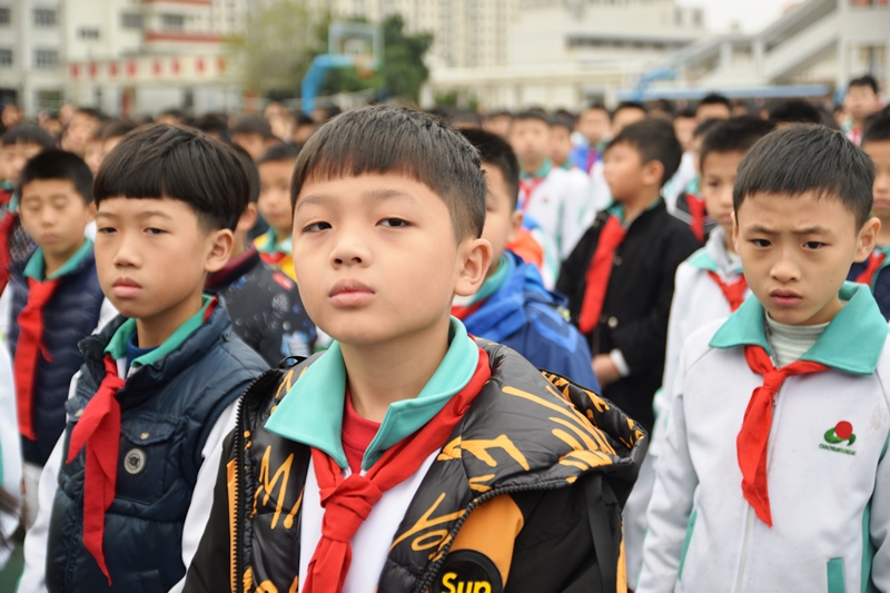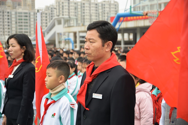 接著,大隊部總輔導(dǎo)員胡丹老師發(fā)表了《銘記歷史,奮發(fā)圖強(qiáng)》的重要講話,她用了一連串觸目驚心的數(shù)據(jù),引領(lǐng)著師生們回顧了八十一年前那場慘絕人寰的南京大屠殺,讓孩子們不要忘記舊中國同胞們的屈辱歷史。在她的講話中,還激勵孩子們要用自己的實際行動去踐行社會主義核心價值觀,為實現(xiàn)偉大的中國夢而奮勇前進(jìn)!