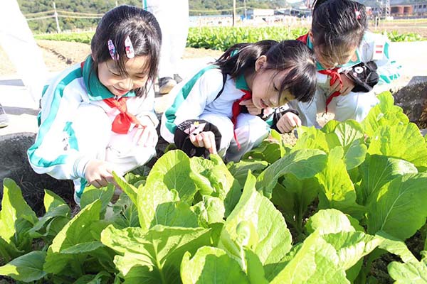 隊(duì)員們?cè)谳o導(dǎo)員老師的帶領(lǐng)下,一邊秩序井然地參觀農(nóng)場(chǎng),一邊聽老師介紹蔬菜的名稱和種植的知識(shí)。在參觀菜地的過(guò)程中,學(xué)生熱情地與在菜地辛苦勞作的工作人員打招呼,并欣賞他們勞作的過(guò)程。