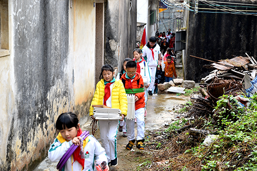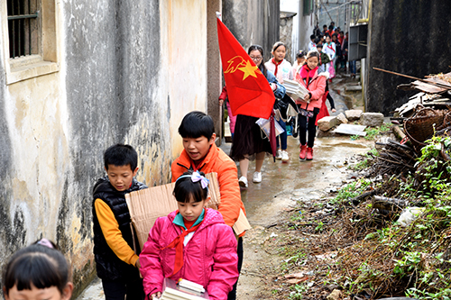 ![]() 雨水澆不滅隊(duì)員們的熱情 ![]() 隊(duì)員們爭(zhēng)先恐后地幫忙搬運(yùn)物品 ![]() 龍溪小學(xué)的隊(duì)員們迫不及待地跑到村口來接自己的小伙伴 ![]() 快看!學(xué)校就在眼前啦! ![]() 校園里的任何事物都顯得那么新奇